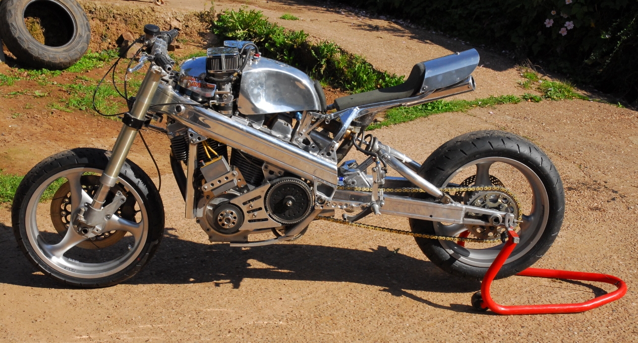 Without putting the bike on a dyno, it's very difficult to quantify its performance, but to get some idea of scale, we put the specs into one of the top engine analysis computers in America, and got numbers in the region of 135bhp. Couple this to a weight of 310lbs, and you've got one and a half times the power to weight ratio of a Fireblade!