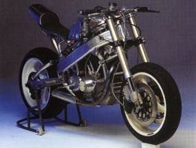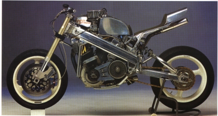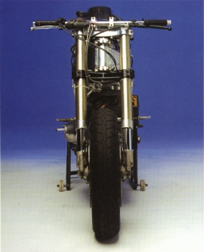 And so my fantasy began to take shape. I started out building it in my kitchen, and used the motor from my road bike, an Evo 1340. I then gradually constructed a killer race engine - a short-stroker with light flywheels, and high rpm. As the class limit is 1300cc, I had to lower the capacity - at the moment it measures 1232cc, but will soon grow to 1290cc. I made the frame from seamless steel tube, and finished it in time to compete in 1988. I raced a lot, riding hard and crashing often - a painful, but effective development process.