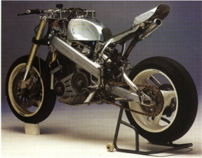 This meant access to a whole lot of components that I wouldn't normally ever get near. I made sure that I made myself useful to lots of people. For instance, I wrote a lots of software for Kayaba to assist with their active-ride suspension project. A bit later they made available a pair of Schwantz's forks, and a rear shock. Likewise I did Michelin a wheelspin analysis programme, and got some racing tyres. I carried on like this for three years, amassing enough parts to start a new version of the bike.