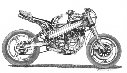Without putting the bike on a dyno, it's very difficult to quantify its performance, but to get some idea of scale, we put the specs into one of the top engine analysis computers in America, and got numbers in the region of 135bhp. Couple this to a weight of 310lbs, and you've got one and a half times the power to weight ratio of a Fireblade!